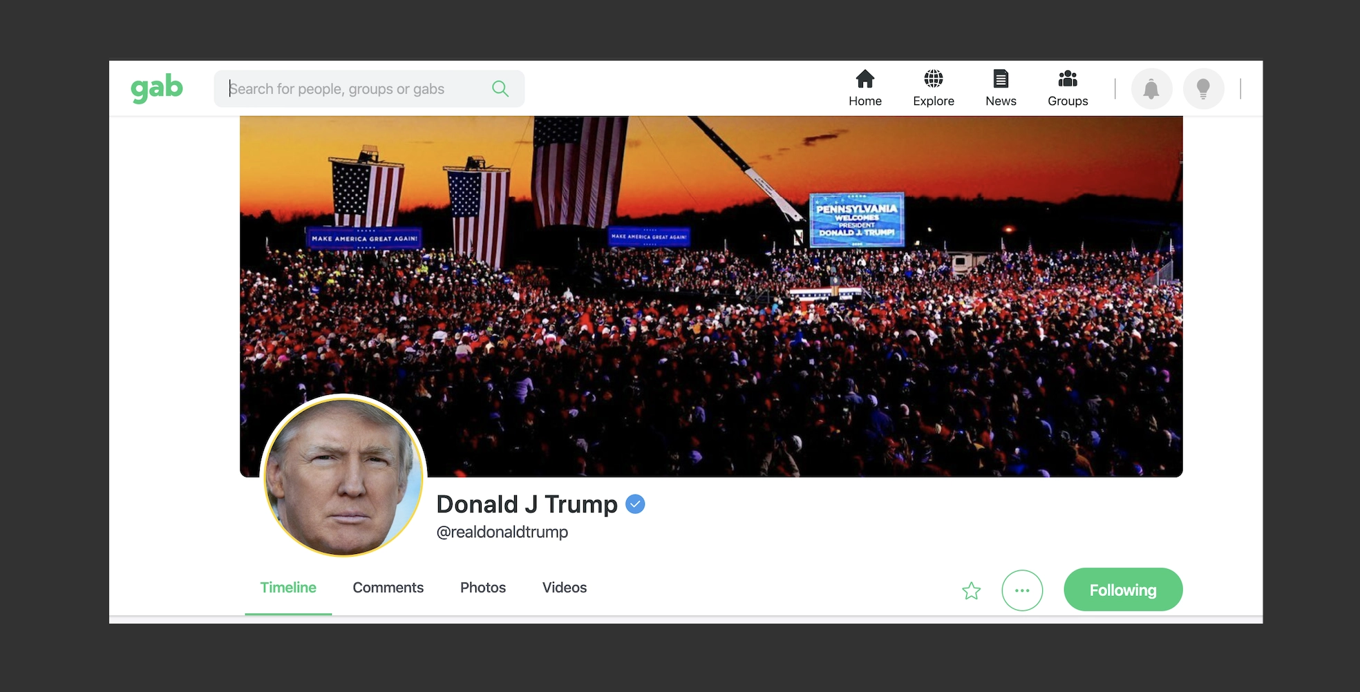 https://news.gab.com/2021/01/06/president-trump-on-gab-com/ この記事だと我々はトランプを迎える準備ができているとしか書いてないような。まだ来てはいないんじゃないの?