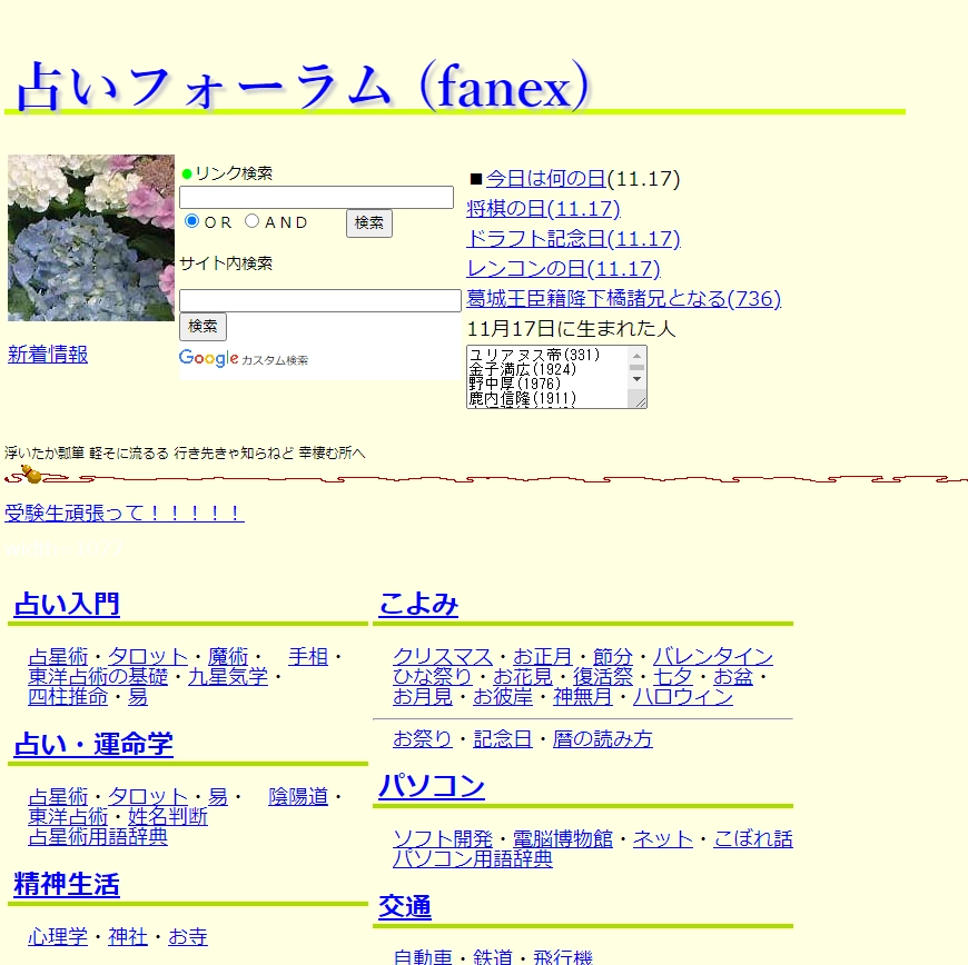 さぞコンピュータの歴史をまとめてあるサイトなのだろうとトップまで遡ったら「占いフォーラム」で、いったいどんな経緯でCPUの歴史が書かれるようになったんだ……