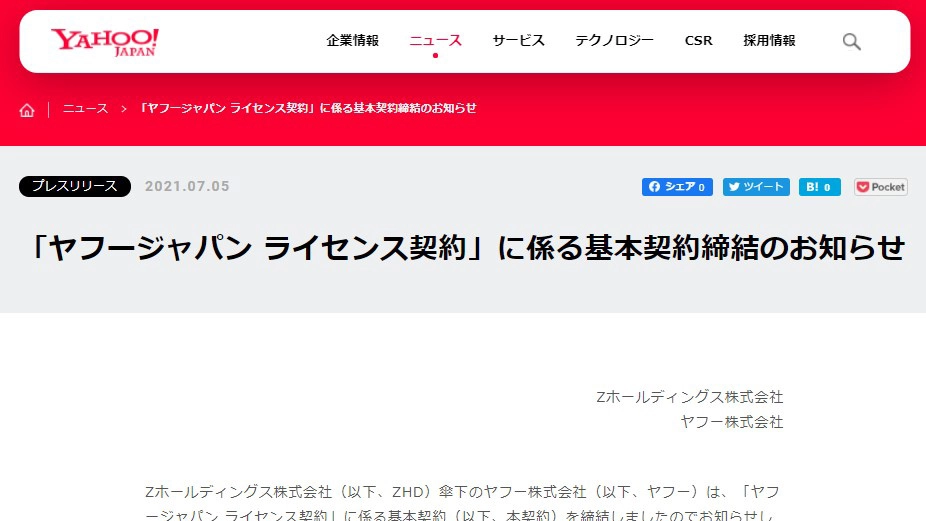 ヤフー、米国側とのライセンス契約終了へ ロイヤリティーなしで「Yahoo!」ブランド利用可能に - ITmedia NEWS https://www.itmedia.co.jp/news/articles/2107/05/news125.html