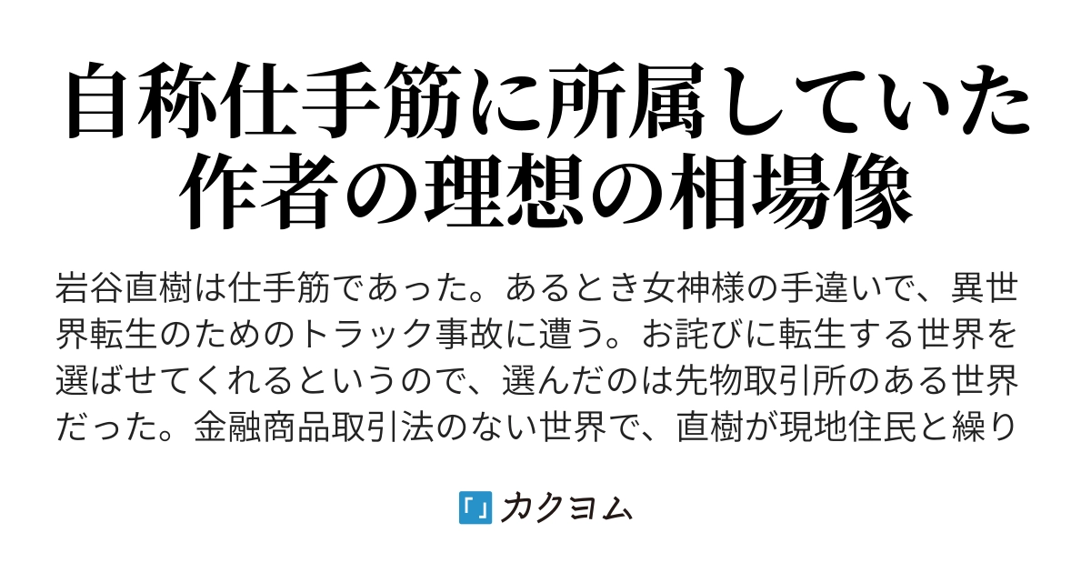 この作者の他の小説もまあまあ業が深いな >> 証券取引等監視委員会から逃げていたら異世界で相場を張る事になりました(犬野純) - カクヨム https://kakuyomu.jp/works/1177354054893370721