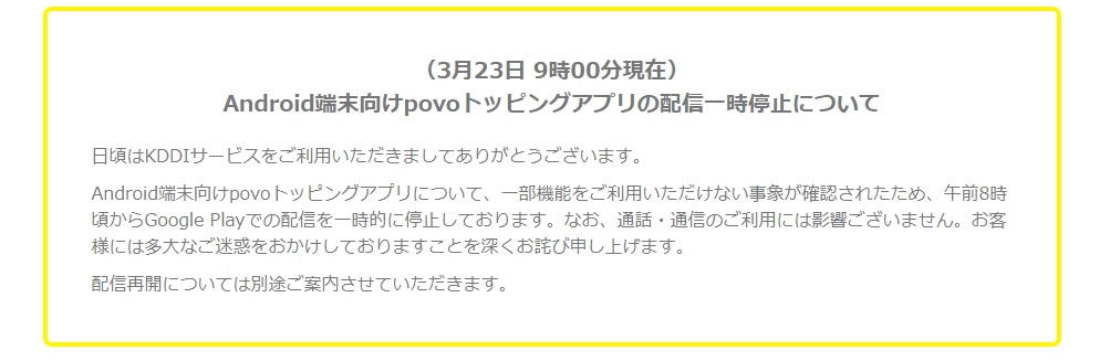 「povo」管理アプリ、Android版の配信を一時停止 プラン開始初日につまずき - ITmedia NEWS https://www.itmedia.co.jp/news/articles/2103/23/news089.html