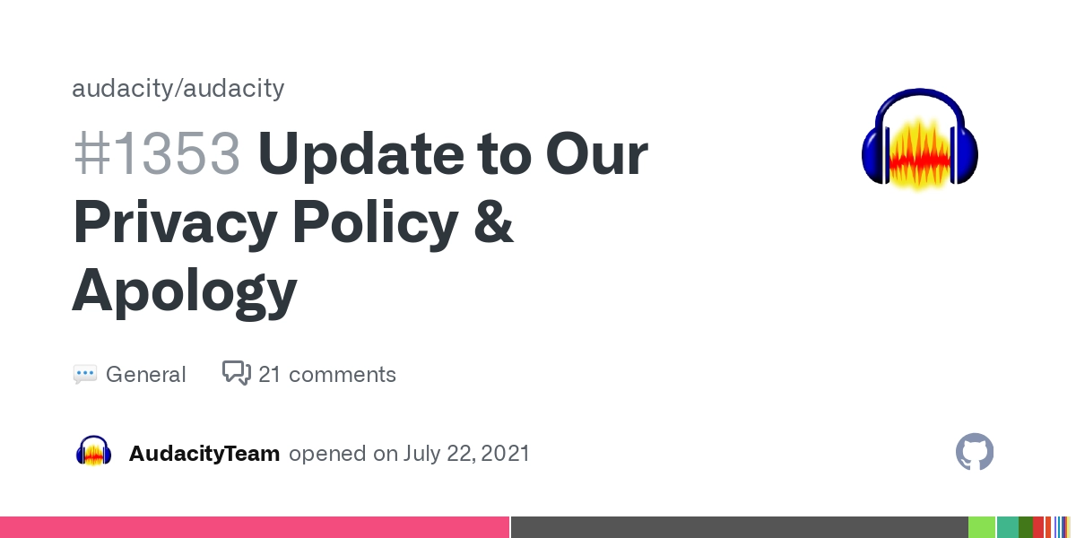 Audacity: Update to Our Privacy Policy and Apology | Hacker News https://news.ycombinator.com/item?id=27927407