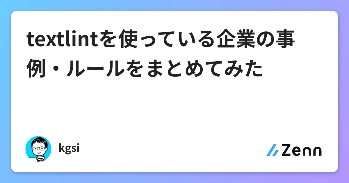 textlintを使っている企業の事例・ルールをまとめてみた https://zenn.dev/kgsi/articles/a88273d293abe07c5acb